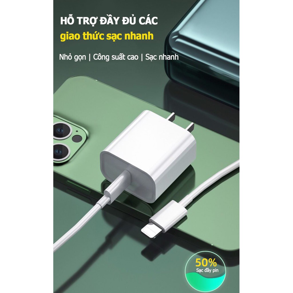 Sạc Nhanh PD 20W USB-C To Lightning (Hỗ Trợ Công Suất Tối Đa IP12,13),Cáp Sạc Nhanh + Củ Sạc Nhanh