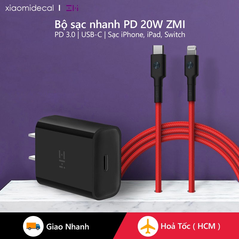 Bộ sạc nhanh PD 20W ZMI, Chuẩn MFi, Hỗ trợ sạc iPhone 13 / 12 / 11 / X / 8, iPad, iPod