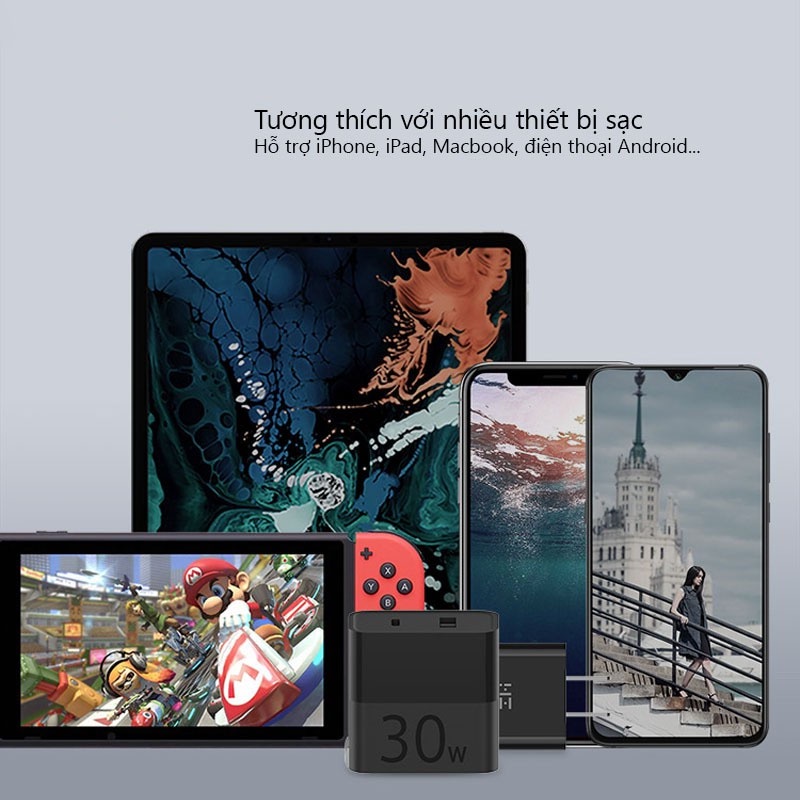 Giới thiệu Bộ sạc nhanh PD 30/20W (1A1C), Chuẩn MFi, Hỗ trợ sạc iPhone, iPad, điện thoại Android