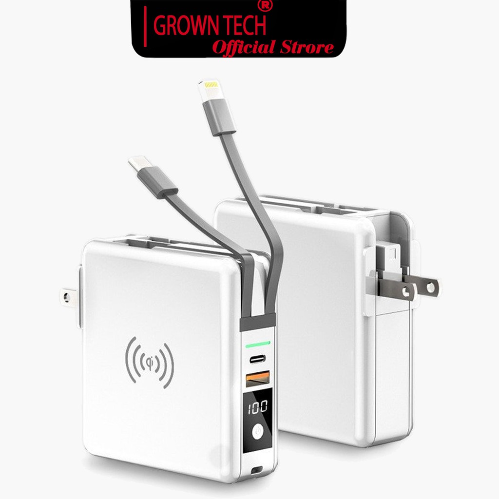 Sạc nhanh pin dự phòng không dây GrownTech 10000mah, sạc dự phòng cao cấp