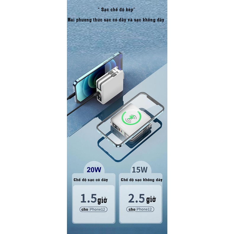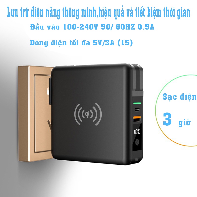 Sạc không dây sạc nhanh kiêm pin dự phòng GROWNTECH 10000mah sạc nhanh 3hSạc siêu không dây, KHÔNG CẦN THÁO ỐP, SẠC XUYÊN QUA ỐP