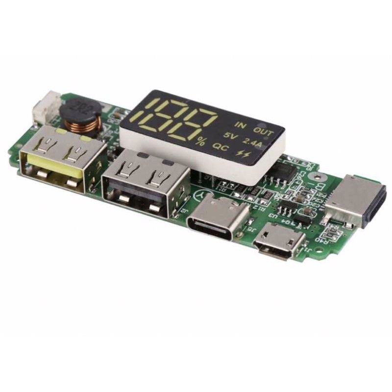 mạch sạc dự phòng tích hợp sạc nhanh 5v 2.4A, QC. 3 cổng sạc micro usb, usb type-c, lightning thông dụng tiện lợi