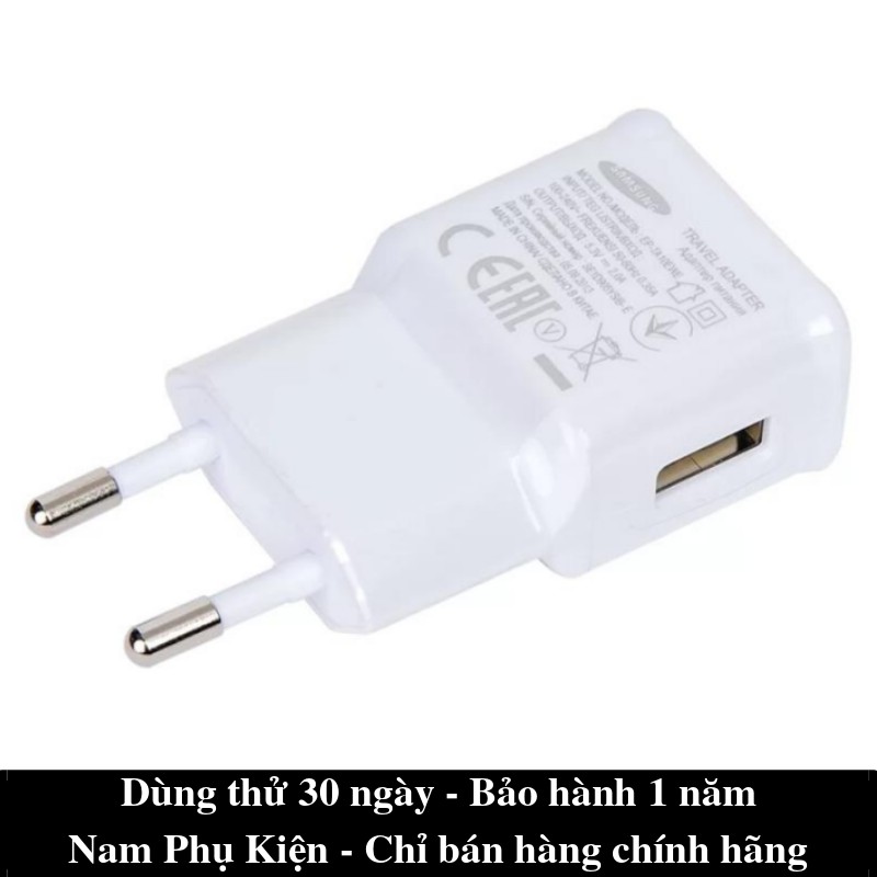 - Củ sạc chỉ có màu trắng, trên thân củ sạc có in các thông tin như: Logo Samsung, các thông số kỹ thuật, barcode, xuất xứ, biểu tượng sạc nhanh (hình tia sét), serial...