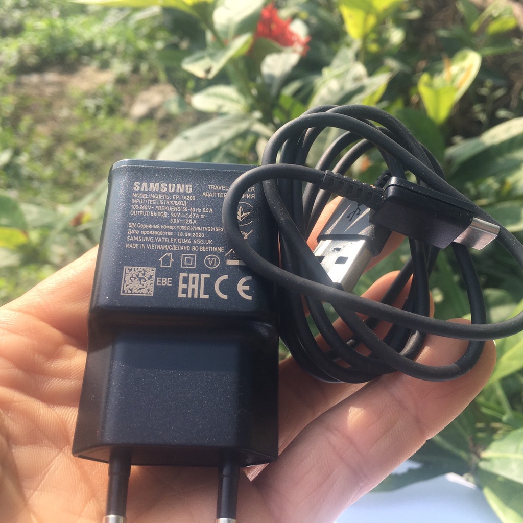 - Trên củ sạc có ghi thông số rất rõ và tùy theo từng thị trường phân phối mà trên thân sạc có thể in bằng các ngôn ngữ khác nhau để phù hợp với người tiêu dùng. Nhưng đặc điểm chung là đều có nơi sản xuất là Việt Nam hay tên công ty Samsung đặt tại Việt Nam