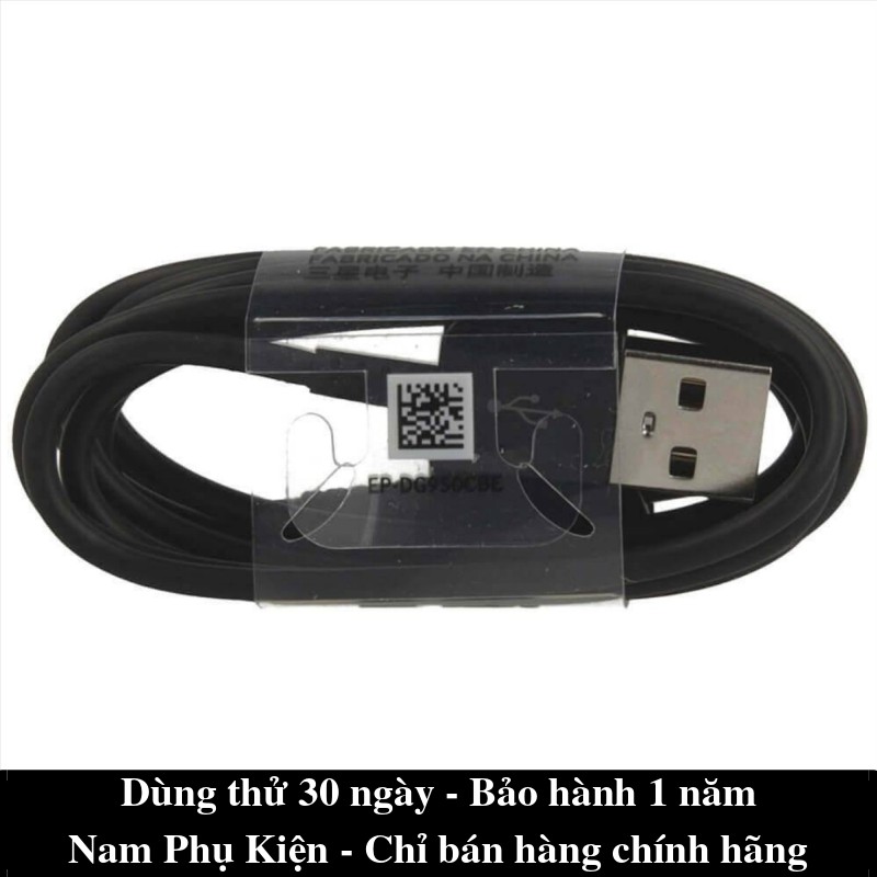 - Cable sạc màu đen, trên phần kim loại tiếp xúc với củ sạc có in mã và xuất xứ của sản phẩm, trên phần cán nhựa có in in biểu tượng kết nối USB