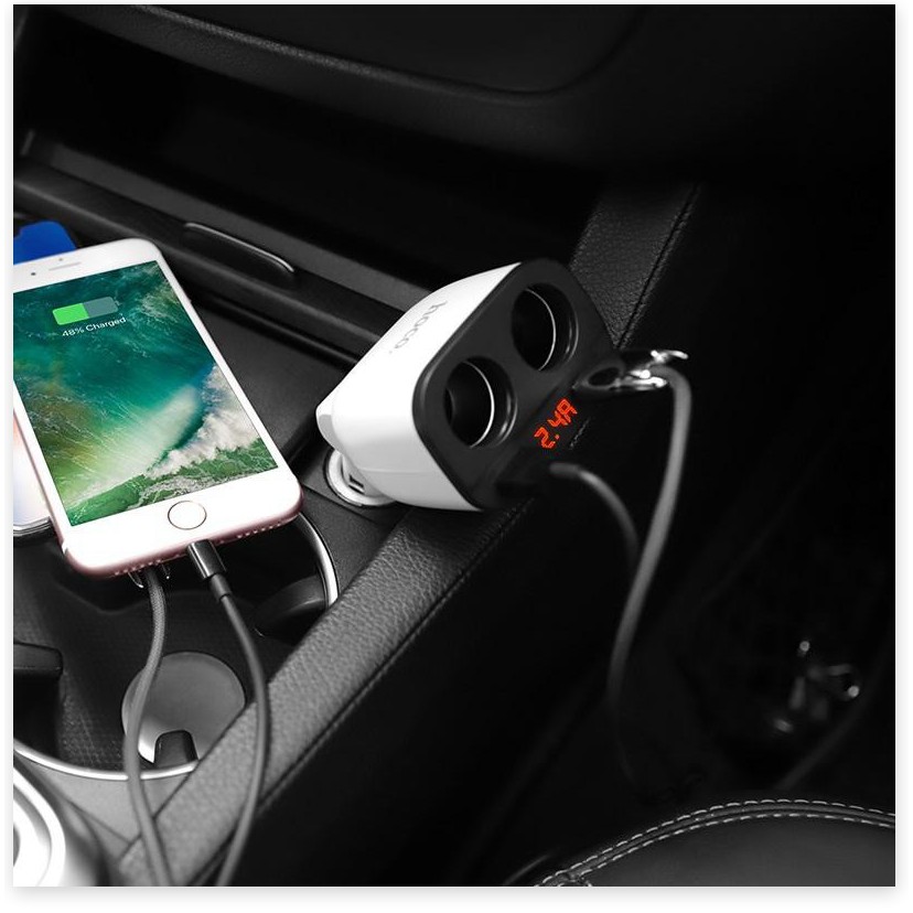 Sạc Ô Tô Hoco Z28 - 2 Cổng USB - Màn Hình Đèn Led Thông Minh - Nhà phân phối chính thức - MrPhukien