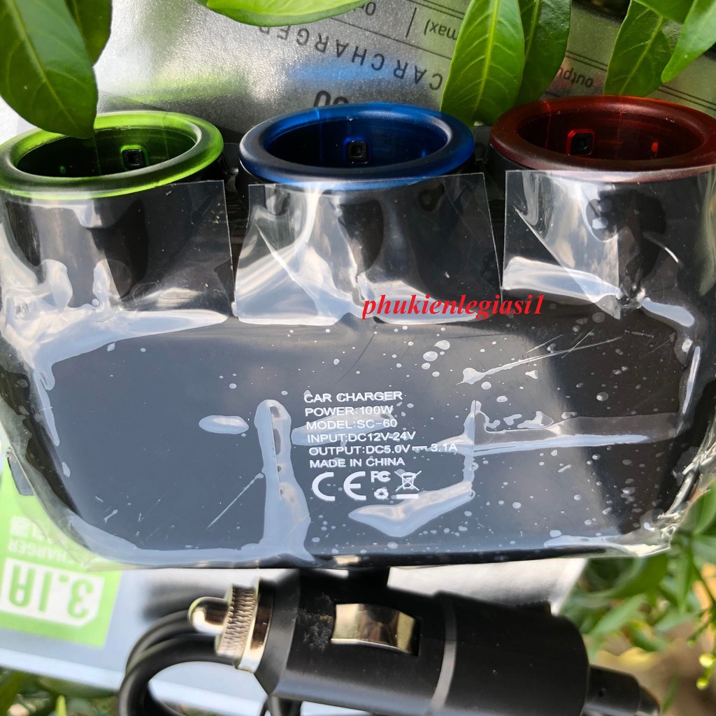 Bộ Sạc Oto 2 cổng usb 3 cổng chia Lecun SC60