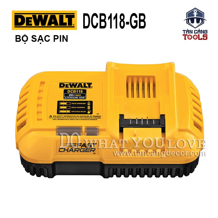 - Sạc pin DeWalt DCB118-GB là loại sạc pin trụ sạc cho các dòng pin 18V, phù hợp với hầu hết loại 1.5Ah, 2.0Ah, 4.0Ah. Sạc pin DeWalt có thiết kế nhỏ gọn, thời gian sạc nhanh và độ bền cao.