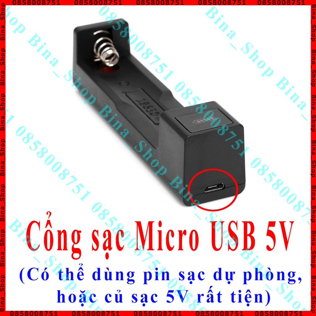 Giới thiệu Bộ sạc pin 18650 1 khe tự ngắt khi đầy Box sạc 1 cell pin tiện dụng (Cáp sạc mua riêng)
