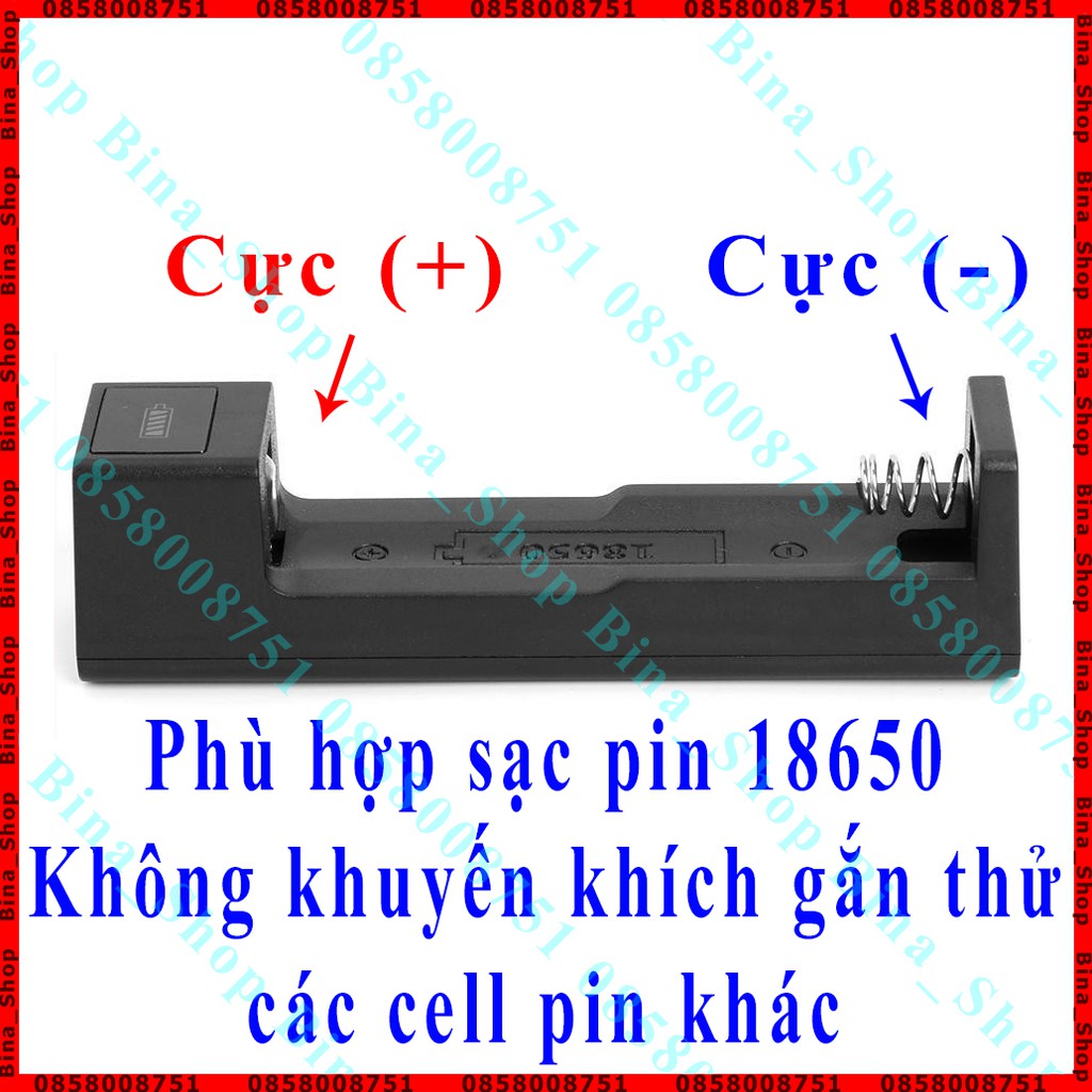 Phù hợp sạc 1 cell pin 18650, các cell pin khác có thể lắp không vừa hoặc không tiếp xúc 2 cực