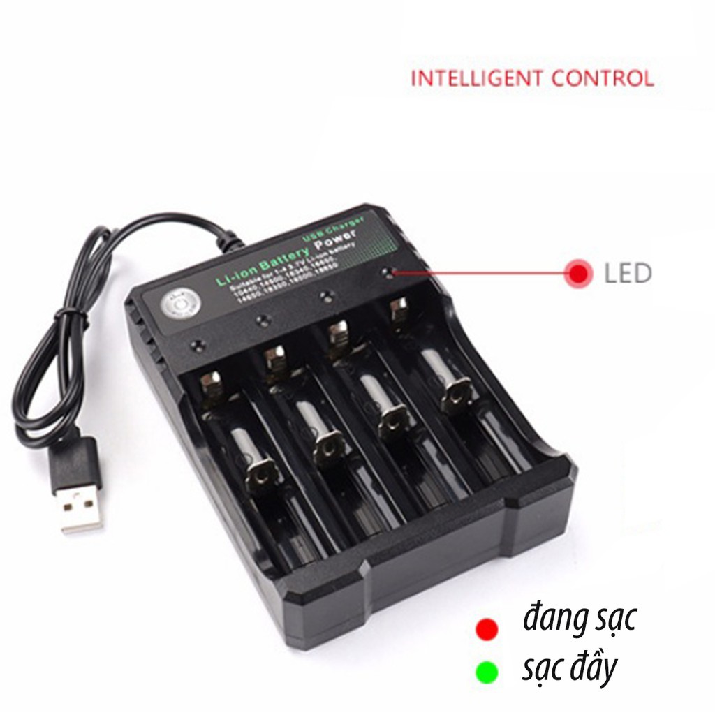 Có đèn báo đỏ khi pin được sạc, báo xanh khi pin đầyTham số đầu ra: DC 4.2V - 1A