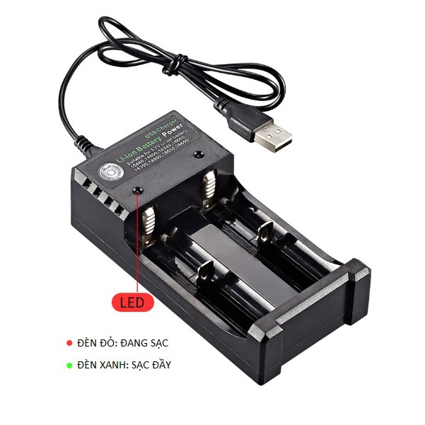 - Có đèn báo khi đang sạc ( Đèn đỏ), sạc đầy ( Đèn xanh )