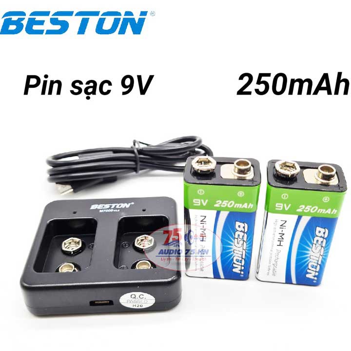 Bộ sạc Pin 9V kèm 2 viên Pin sạc 9V Beston Chính Hãng.