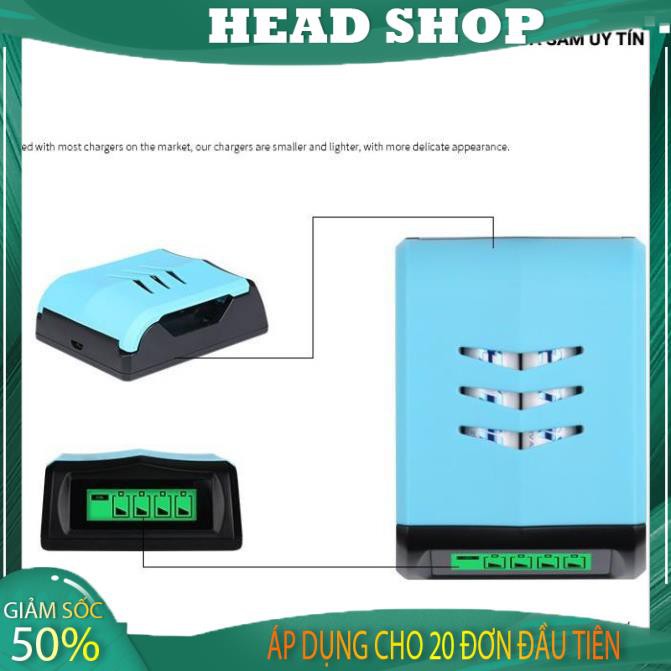 Bộ sạc nhanh thông minh chuyên dùng cho các thiết bị điện tử như micro không dây, đèn pin công suất cao, radio, điều khiển, thiết bị nghe nhìn không dây… với bộ sạc thông minh tiên tiến có màn hình LCD hiển thị trạng thái sạc, lỗi, thông số % dung lượng pin tương ứng các vạch, bộ IC điều khiển sạc tự ngắt khi pin đầy và sạc pin độc lập từng viên. Màn hình LCD sắc nét, vỏ nhựa ABS cao cấp, bộ sạc thông minhNhà sản xuất: Blue Baby (Shenzhen) Technology Co., Ltd. Địa chỉ: 701, Tòa nhà C, Căn hộ Xinxing, Số 696, Đại lộ Longxiang, Phố Long Thành, Quận Longgang, Thâm Quyến, Quảng Đông, Trung QuốcNhà sản xuất: Blue Baby (Shenzhen) Technology Co., Ltd. Địa chỉ: 701, Tòa nhà C, Căn hộ Xinxing, Số 696, Đại lộ Longxiang, Phố Long Thành, Quận Longgang, Thâm Quyến, Quảng Đông, Trung QuốcTên shop: Head Công nghệ Số