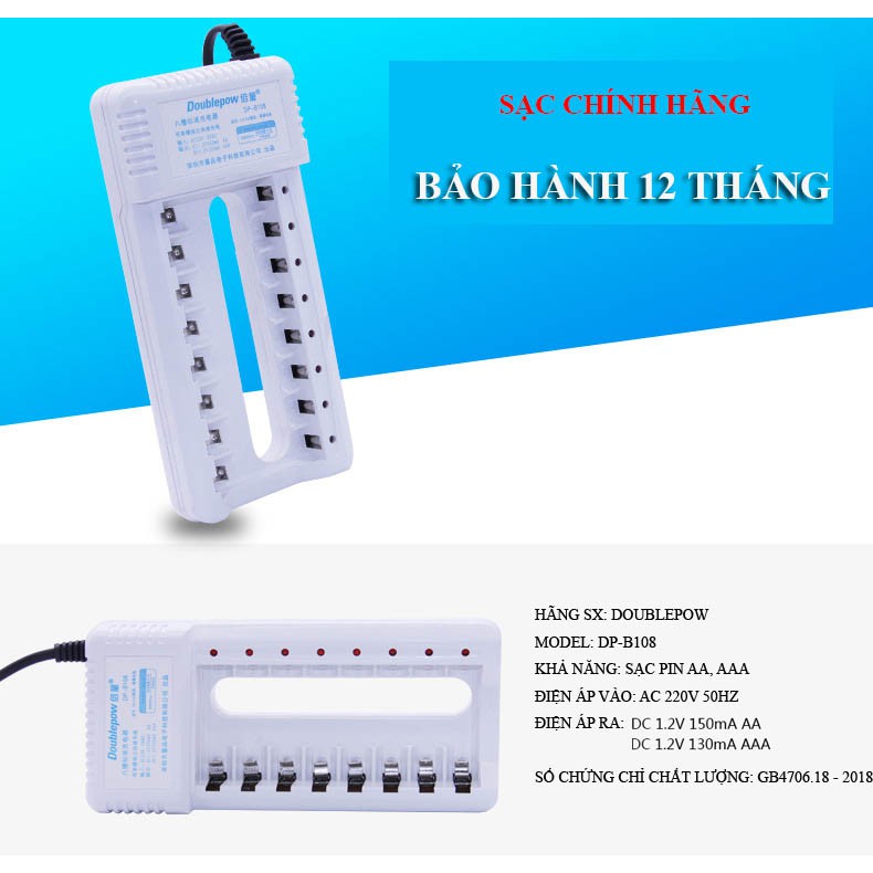 hông tin chi tiết sản phẩm: Sạc pin AA, AAA 8 cổng Double Pow DP - B108