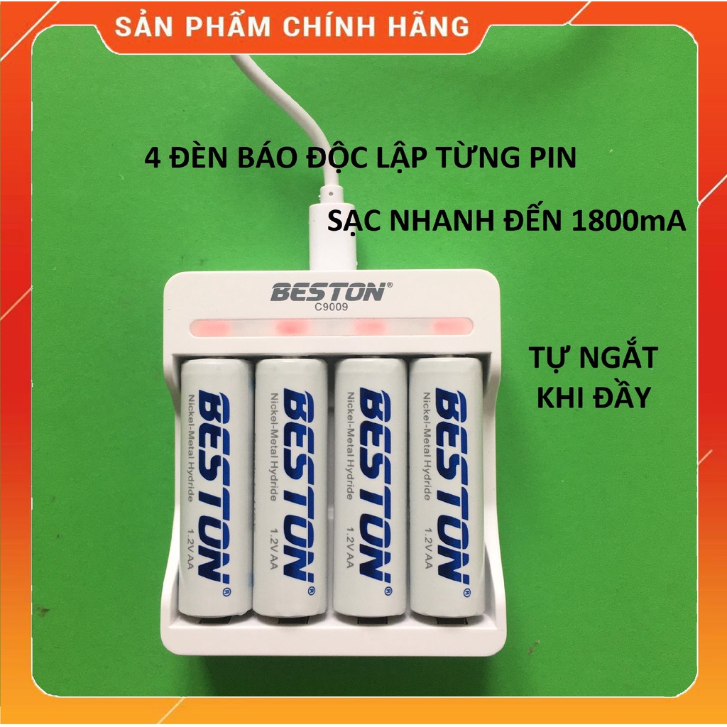 Bộ Sạc Pin AA, AAA Beston C9009 Tự ngắt khi đầy Sạc Nhanh Có Đèn báo đầy độc lập từng pin, pin sạc chính hãng