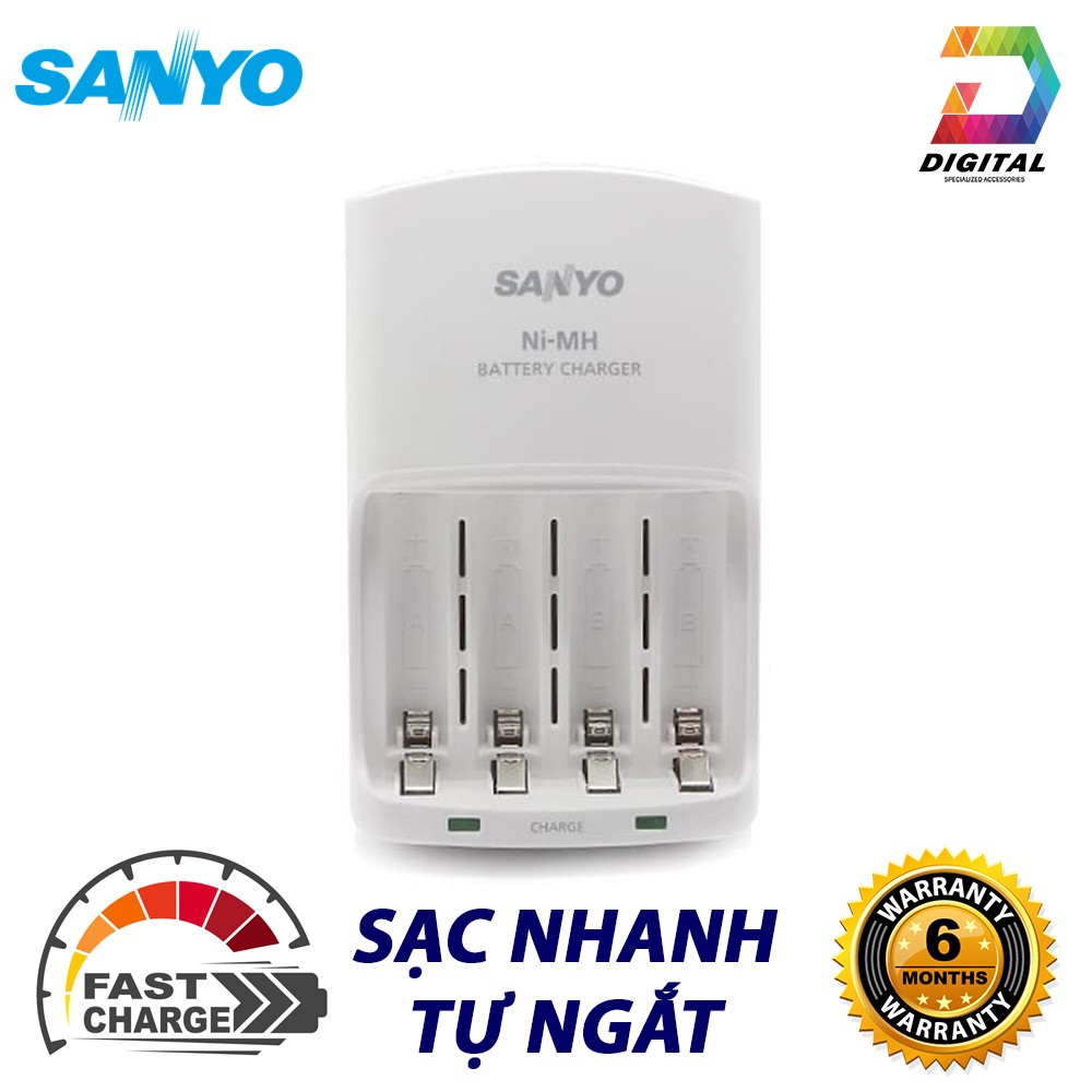 - Sạc pin Sanyo thiết kế gọn nhẹ với vỏ ngoài màu trắng, dễ dàng mang theo và sử dụng bất kỳ nơi nào có nguồn điện 220-240V. Người dùng có thể sạc cùng lúc 2 hoặc 4 pin AA/AAA NiMh. Với thiết kế tiện lợi có đèn tín hiệu báo pin sạc đầy, Sanyo sẽ là một phụ kiện tuyệt vời để đáp ứng hiệu quả nhu cầu sử dụng pin sạc hằng ngày của bạn.