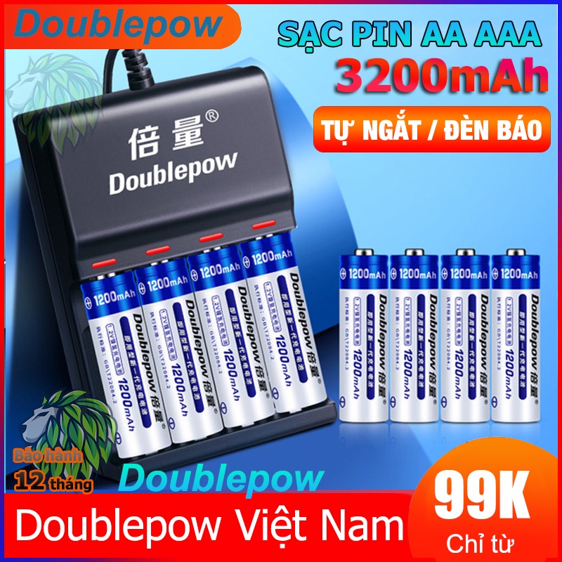 Pin Sạc AA Doublepow Chính HãngDung lượng Pin: 1200 đến 3200mAhmAh x4