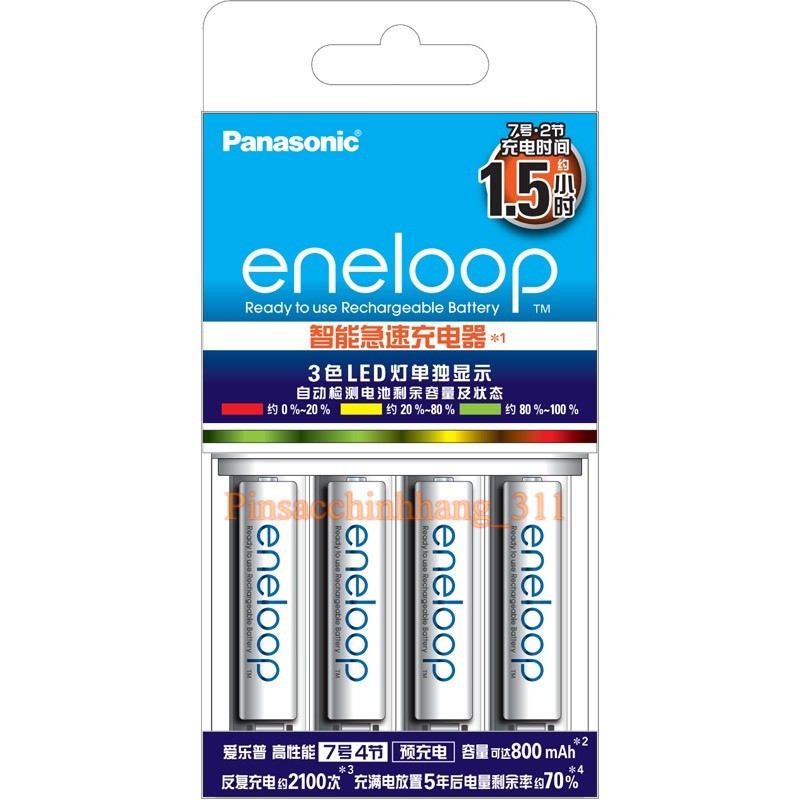 Bộ sạc pin AA, AAA nhanh , tự ngắt Panasonic Eneloop BQ-CC55C kèm 4 pin sạc AAA 800mAh, Tặng kèm hộp đựng pin eneloop