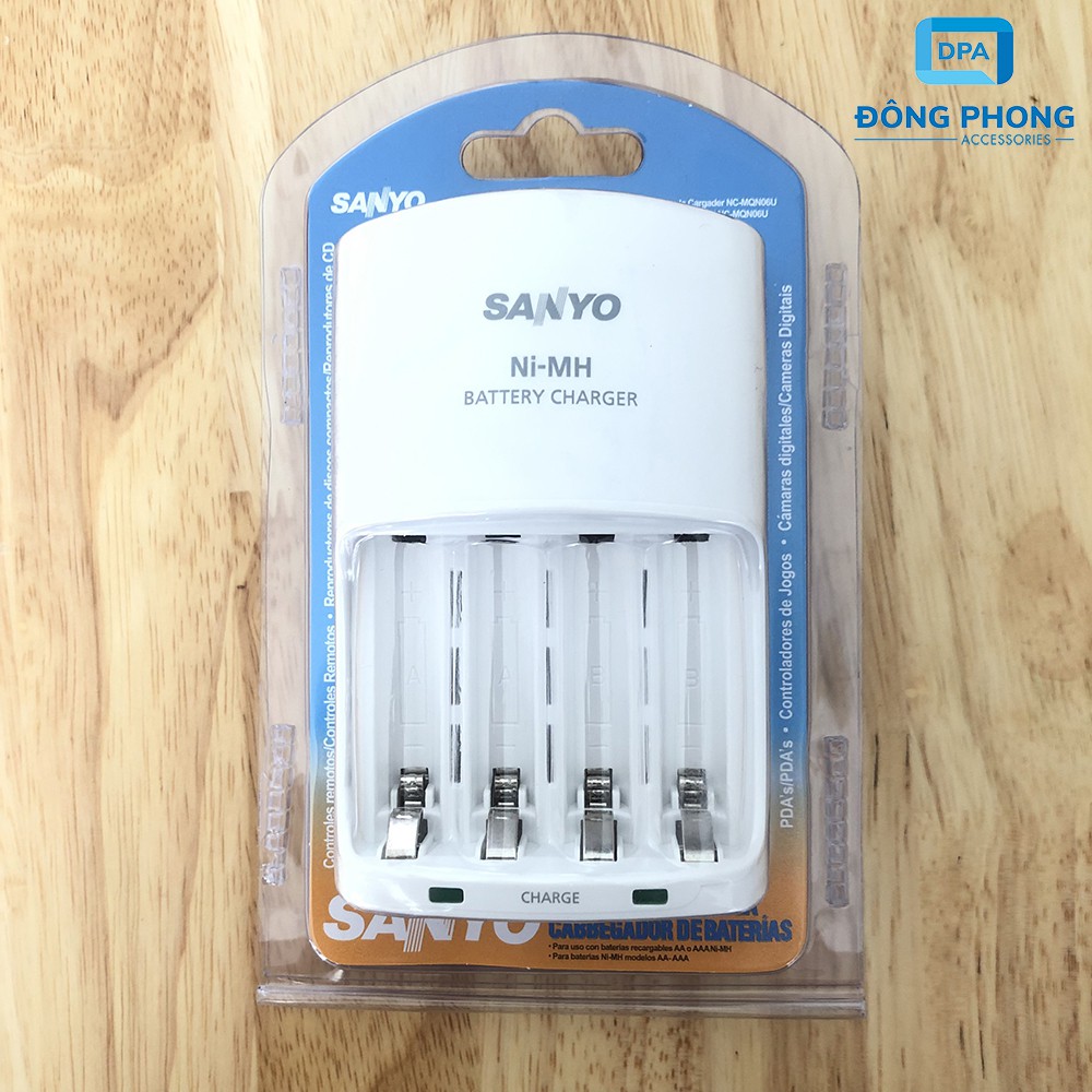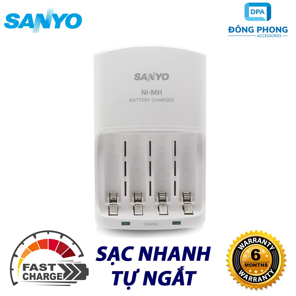 - Sạc pin Sanyo thiết kế gọn nhẹ với vỏ ngoài màu trắng, dễ dàng mang theo và sử dụng bất kỳ nơi nào có nguồn điện 220-240V. Người dùng có thể sạc cùng lúc 2 hoặc 4 pin AA/AAA NiMh. Với thiết kế tiện lợi có đèn tín hiệu báo pin sạc đầy, Sanyo sẽ là một phụ kiện tuyệt vời để đáp ứng hiệu quả nhu cầu sử dụng pin sạc hằng ngày của bạn.