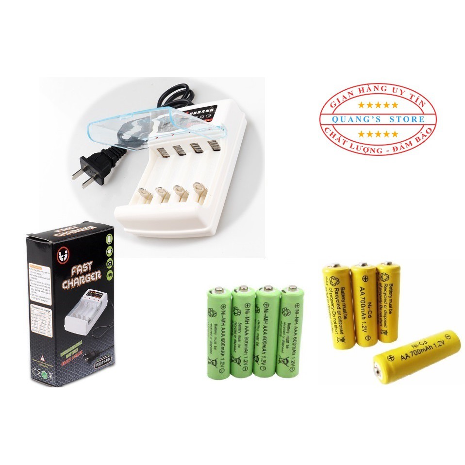 Sạc Pin Cho Pin Tiểu AA và Pin Đũa AAA + Quà Tặng 4 Viên Pin Tiểu Sạc AA và 4 Viên Pin Đũa Sạc AAA