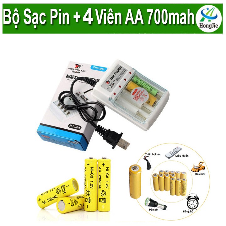 Bộ Sạc Pin Đa Năng AA , AAA Tặng Kèm 04 Viên Sạc AA 700mAh 1.2V