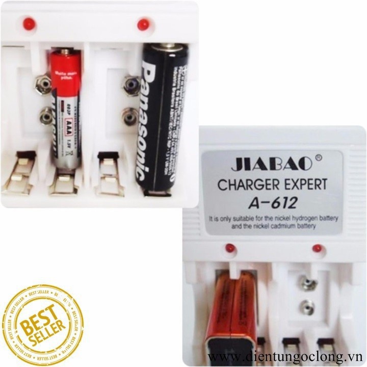 Có ngăn sạc riêng cho từng viên pin.Bộ Sạc Pin Đa Năng Jiabao A612 Cho Pin AA-AAA-9V Kèm 4 Viên Pin Sạc AA 1