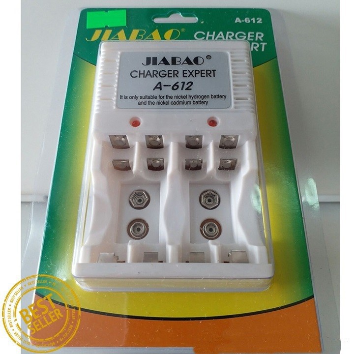 Có ngăn sạc riêng cho từng viên pin.Bộ Sạc Pin Đa Năng Jiabao A612 Cho Pin AA-AAA-9V Kèm 4 Viên Pin Sạc AA 1