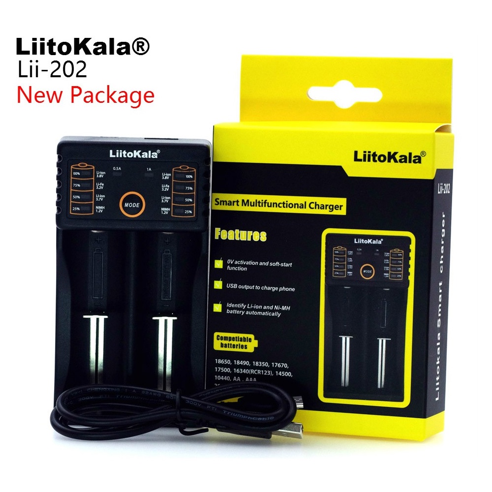 Thiết Bị Điện Gia Dụng > Pin || Sạc pin đa năng Liitokala lii-202 lii-100 lii-402 lii 202 Sạc pin lithium LIFEpo4 NI-MH 14500 18650, AA, AAA, 26650...Còn hàng