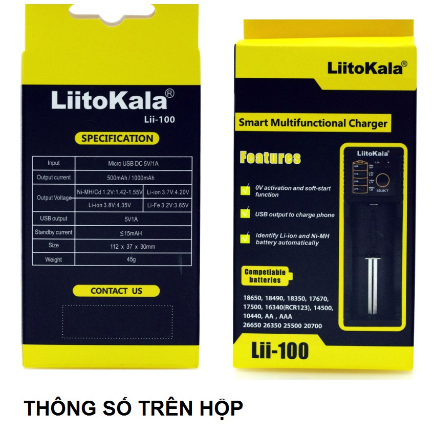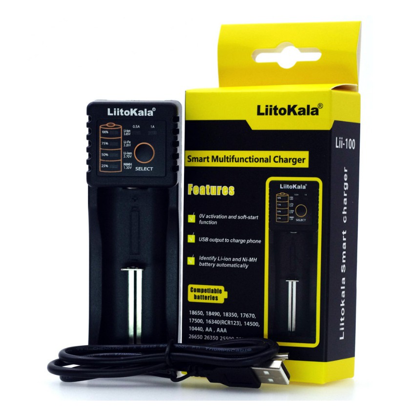 Thiết Bị Điện Gia Dụng > Pin || Sạc pin đa năng Liitokala Lii-100 một khe cho pin 18650, AA, AAA, 14500Còn hàng