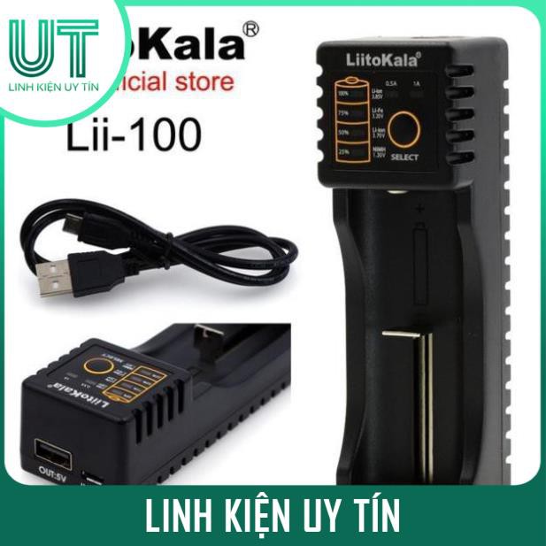Thiết Bị Điện Gia Dụng > Pin || Sạc pin đa năng Liitokala lii-100 một khe pin cho pin 18650, AA, AAA, 26650... (sạc được tất cả các loại pin sạc)Còn hàng
