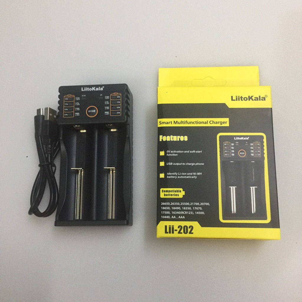Sạc pin đa năng Liitokala lii-202 hai khe pin cho pin 18650, AA, AAA, 26650, 18350, 14500...