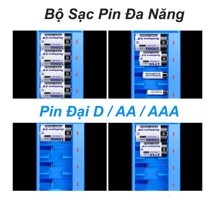 Hãng sản xuất: DoublepowSạc được các loại pin: pin tiểu AA, pin đũa AAA, pin trung C, pin đại D