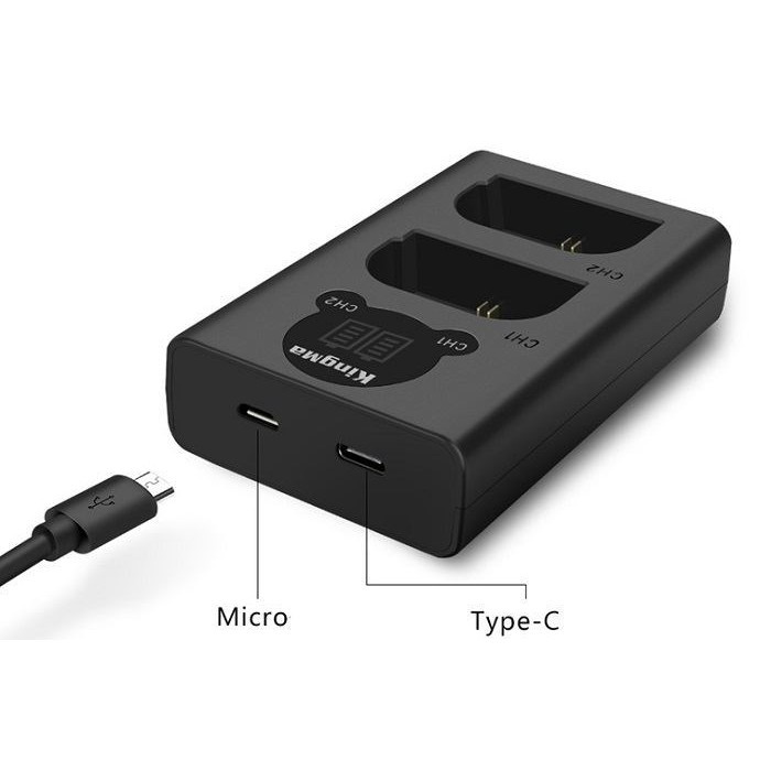 Sạc pin đôi LCD LP-E6 Kingma sử dụng cho tất cả các mẫu máy ảnh sử dụng Pin Canon LP-E6 như Canon 60D 6D 70D 5D2 5D3 5D4 7D2… Sạc được cùng lúc 2 pin riêng biệt với đèn báo trạng thái dung lượng pin. Sạc pin nhỏ gọn tiện lợi dễ dàng mang theo, cổng cắm micro USB 5V thông dụng từ cục sạc dự phòng, sạc điện thoại.THÔNG SỐ KỸ THUẬT: