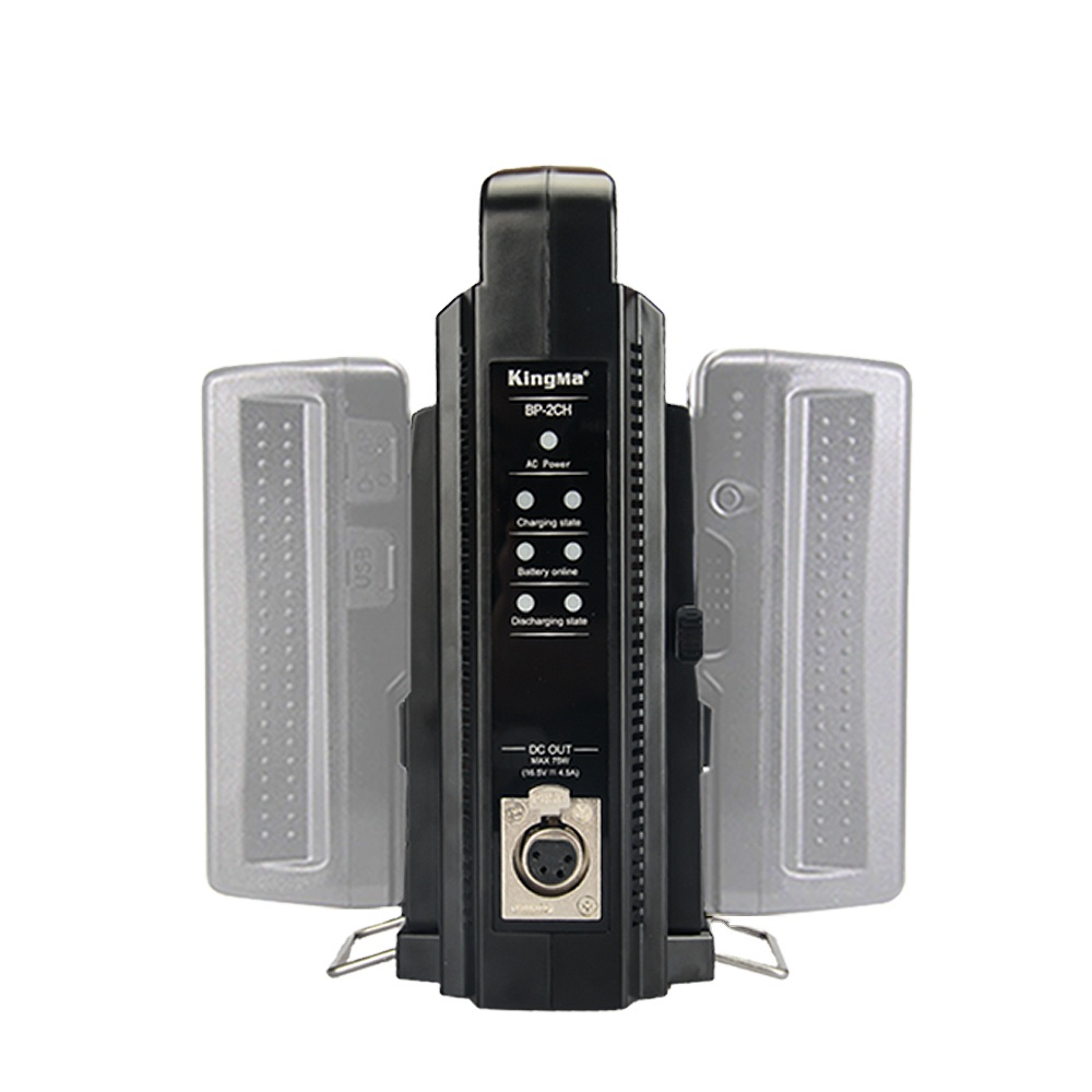 Bộ sạc đôi pin V-Mount của KingMaVới chức năng sạc cùng lúc 2 pin V-Mount như KingMa BP95W & BP190WS hoặc các dòng pin V-Mount khác có trên thị trường.