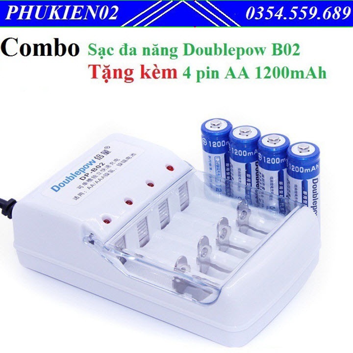 Bộ Sạc Pin Doublepow DP-B02 Kèm 4 Pin Tiểu Sạc AA 1200mAh