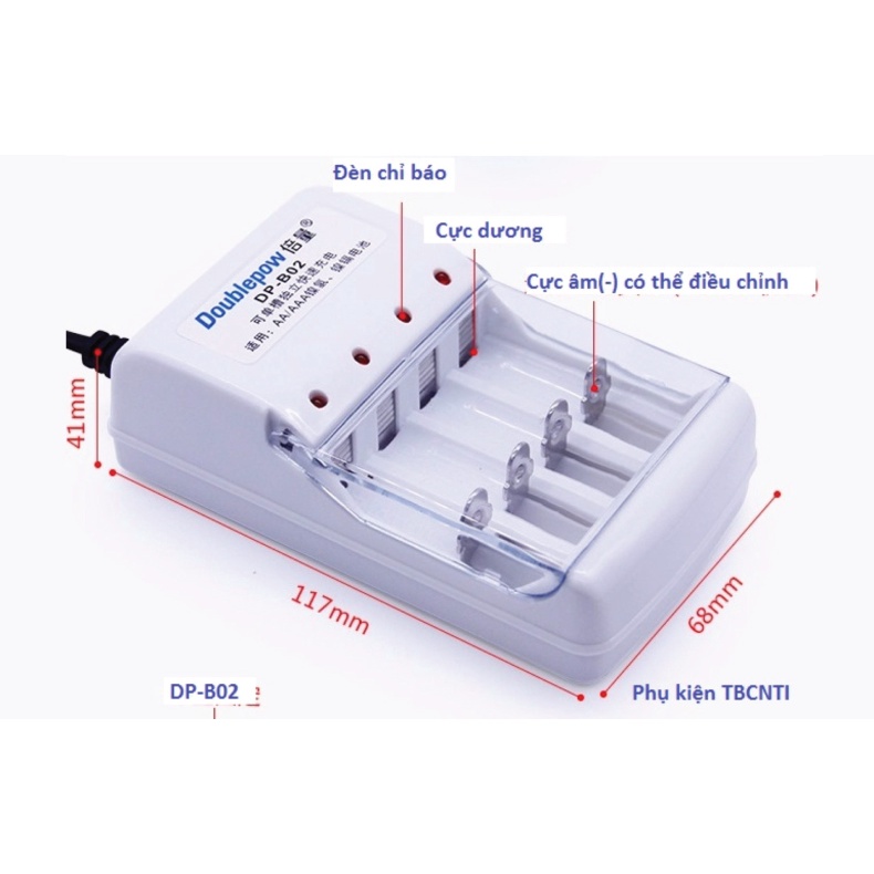 * 01 Sạc Doublepow DP-B02 sạc cùng lúc được 4 viên pin, Có thể sạc Pin tiểu AA hoặc Pin đũa AAA (Chuẩn pin 1.2V Ni-Mh, Ni-Cd).