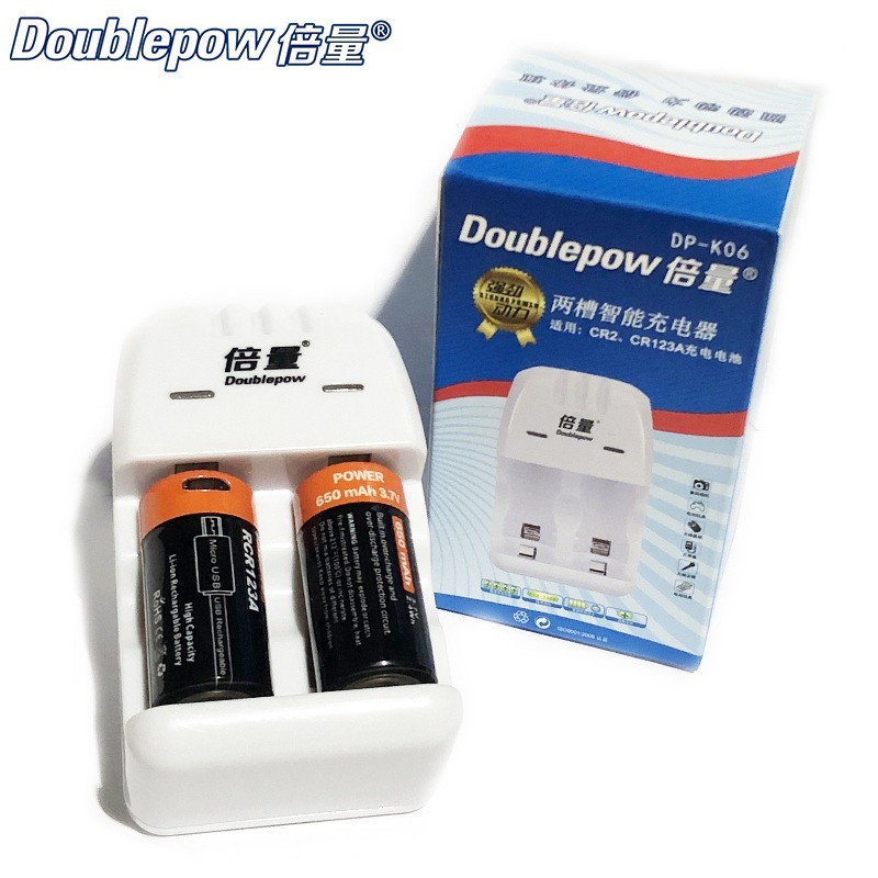 Bộ Sạc Pin Doublepow DP-K06 Kèm 02 Pin Sạc DP-CR123A 650mAh Cao Cấp