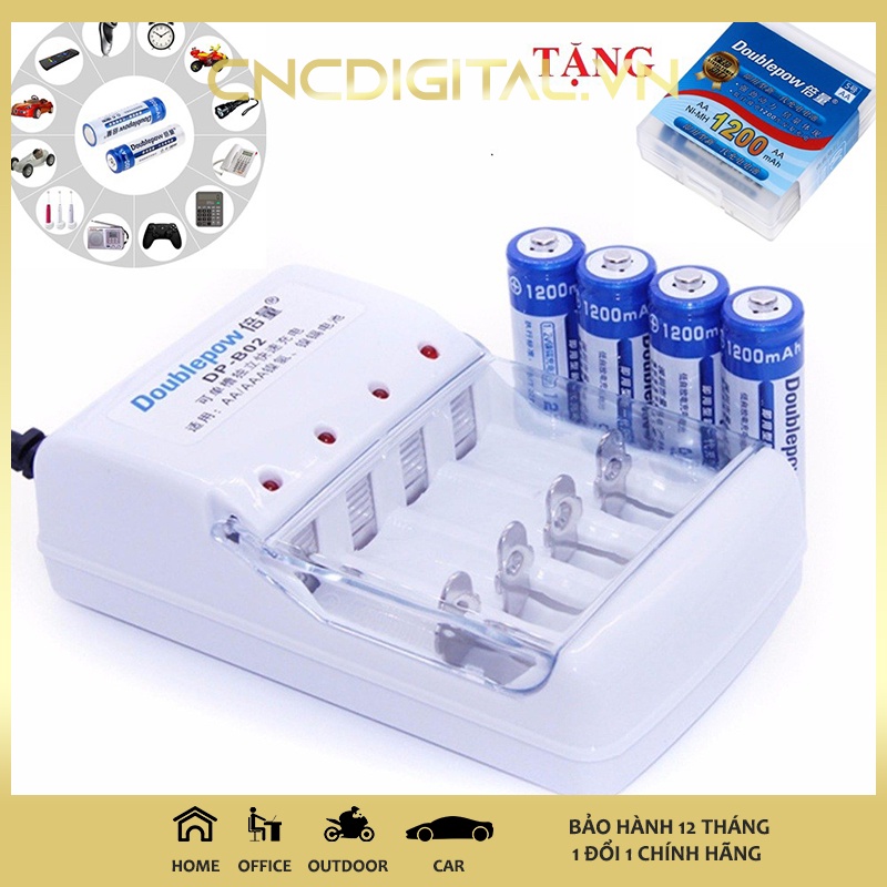 Cameras & Flycam > Phụ kiện máy ảnh > Bộ sạc pin || Bộ Sạc Pin Doublepow Kèm 4 Pin Tiểu Sạc AA 1200mAh - Combo Pin và bộ sạc Doublepow - Hàng Chính Hãng 1 đổi 1Còn hàng