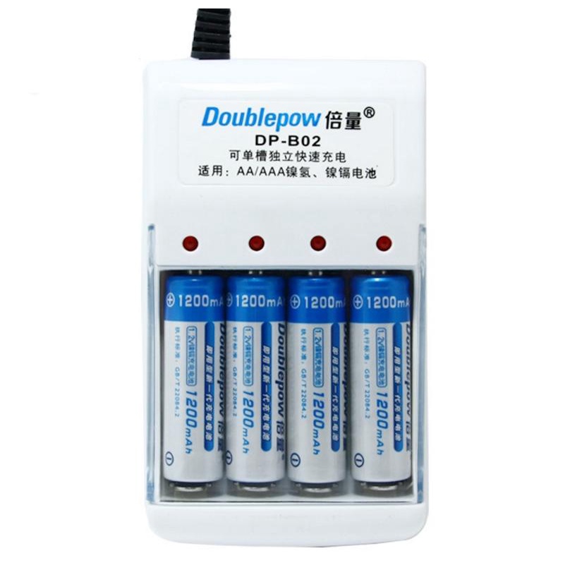 Bộ Sạc Pin Doublepow Kèm 4 Pin Tiểu Sạc AA 1200mAh - Combo Pin và bộ sạc Doublepow - Hàng Chính Hãng 1 đổi 1