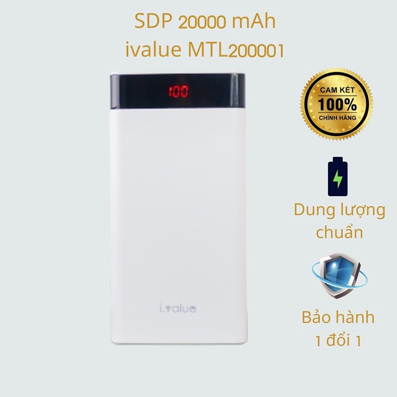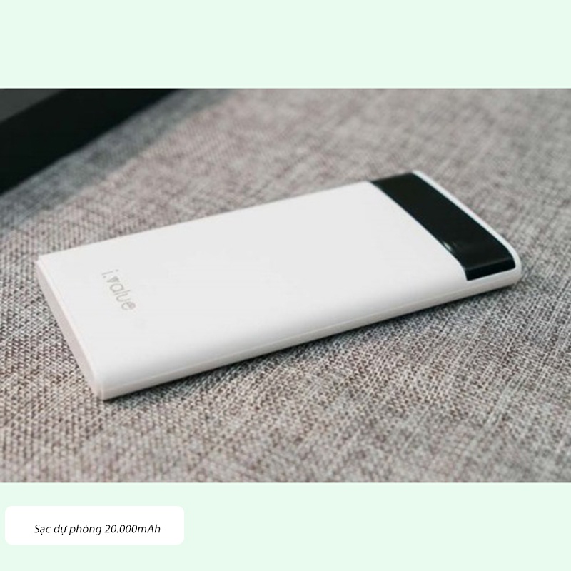 Sạc pin dự phòng 20000 mAh chính hãng ivalue 2 đầu ra 2 đầu vào. Nạp lại đơn giản bằng sạc điện thoại iphone, samsung.
