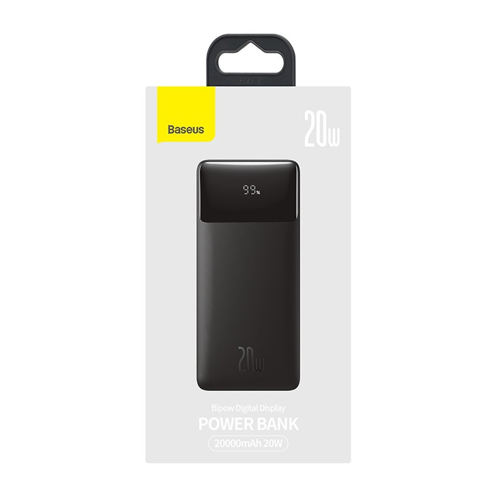 - Sạc dự phòng Baseus Bipow 20000mAh sạc nhanh 20W, màn hình LCD (Đen) - Hãng phân phối chính thức