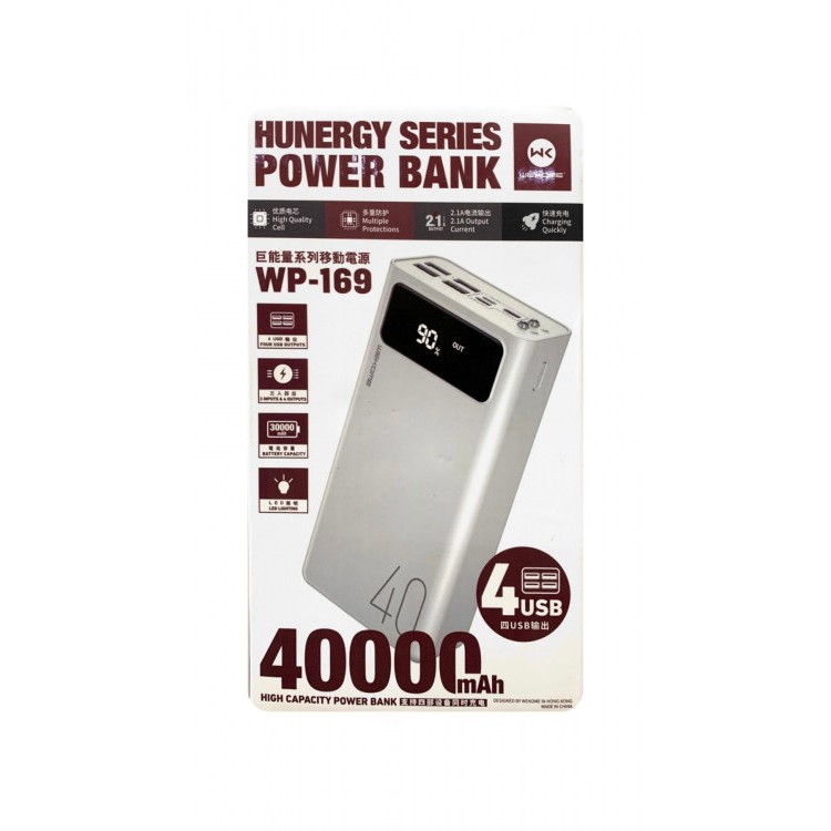 Sạc Pin Dự Phòng 40000mah/50000mah WP-169 4 cổng sạc cùng 4 Thiết Bị - Tích Hợp Led - Hiển Thị Đèn Pin