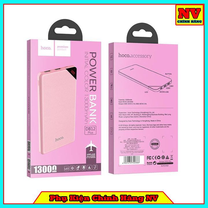 🔥Pin dự phòng HOCO DB12 Plus 13000mAh sở hữu thiết bị nhỏ gọn, đẹp với nhiều màu sắc phổ biến cho người dùng lựa chọn bao gồm: màu hồng, tím, đen, trắng và xanh nước biển. Sản phẩm sử dụng lõi pin polymer cao cấp.