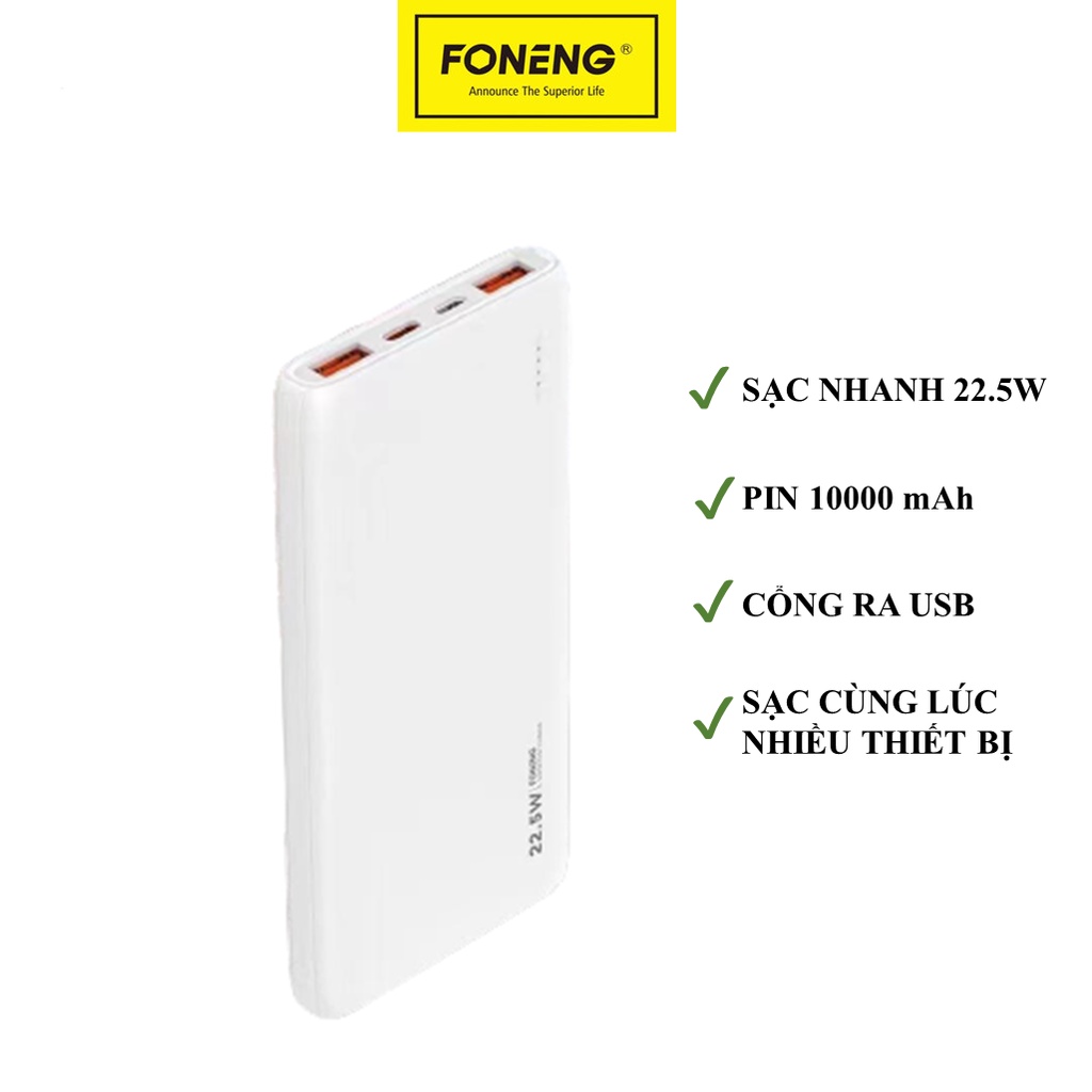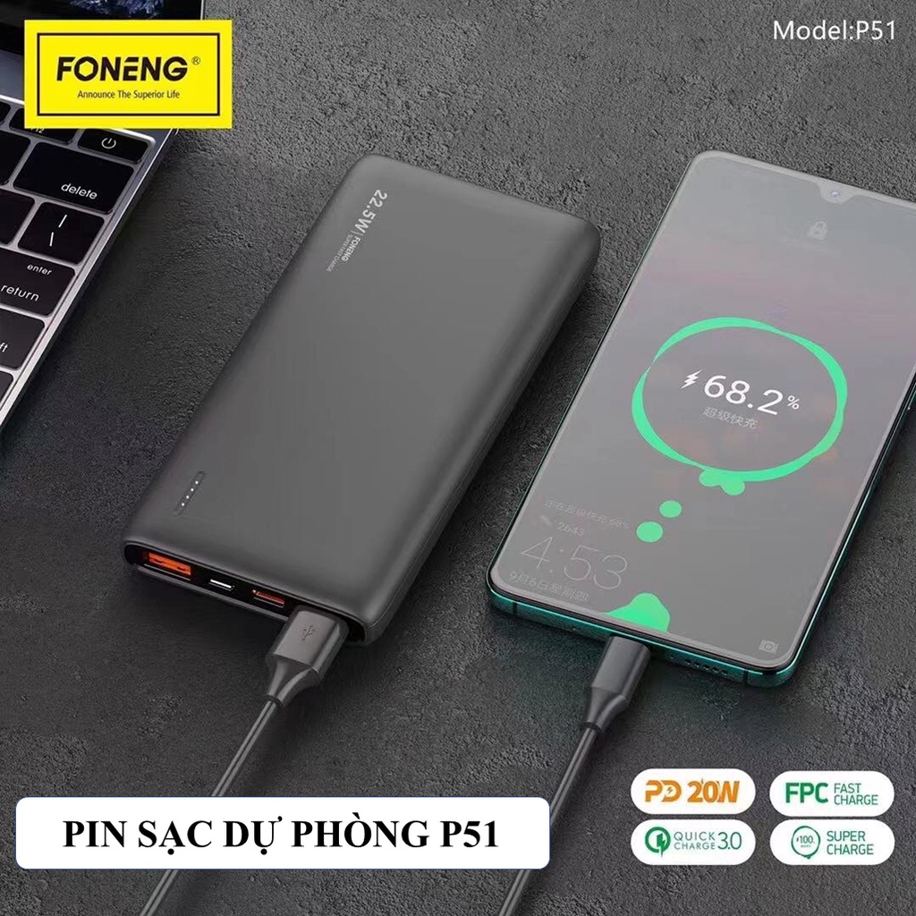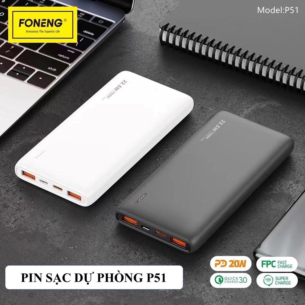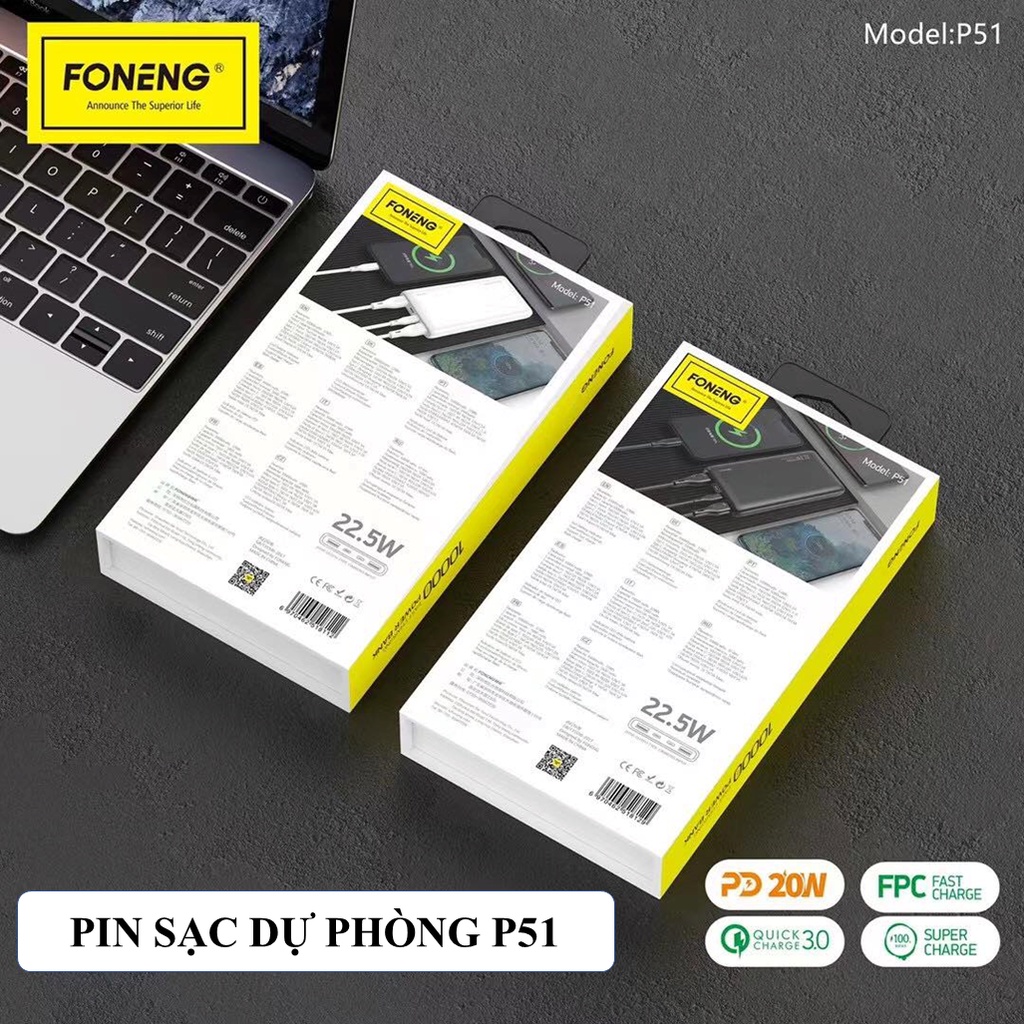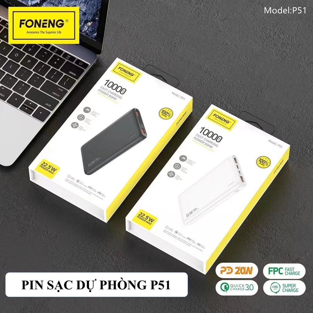 Sạc Pin Dự Phòng Foneng 10.000mAh P51- Sạc Nhanh PD 22.5W - Chính hãng Bảo Hành 12 Tháng