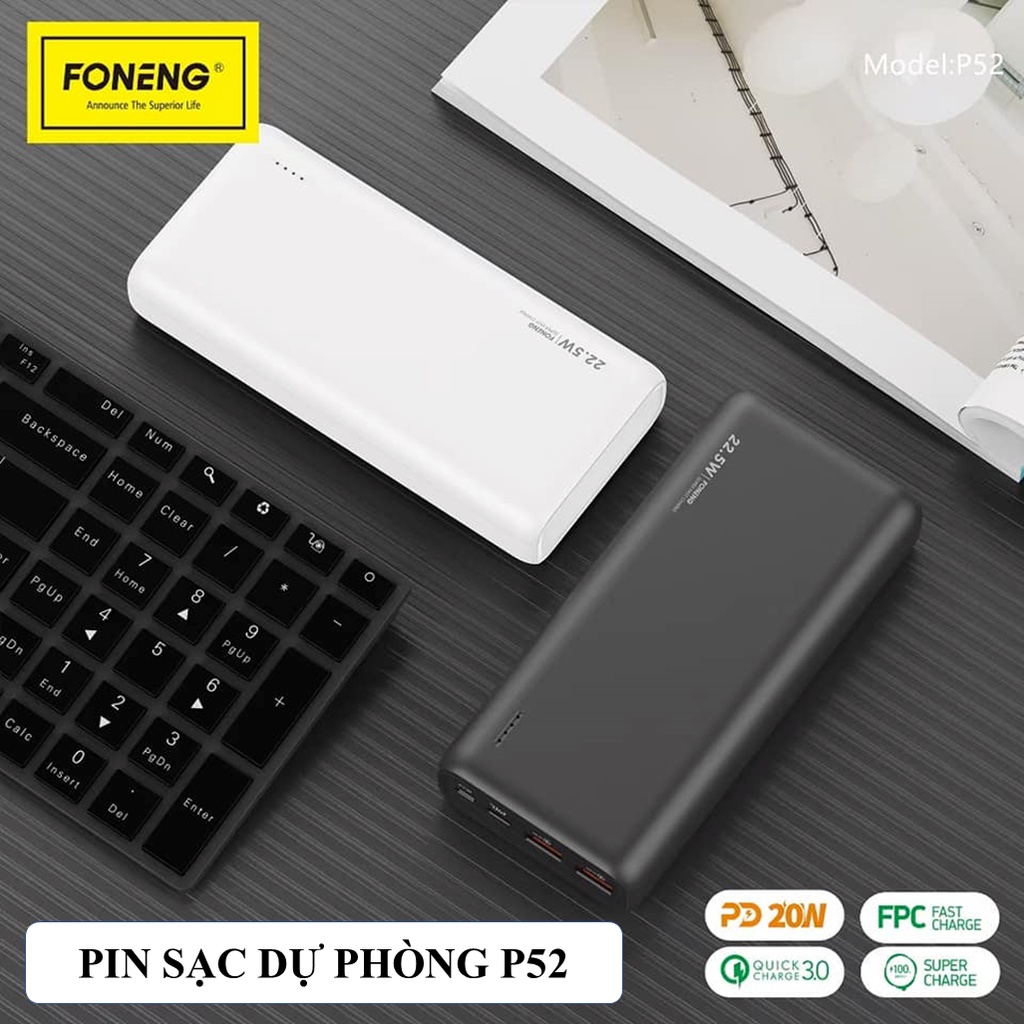 Giới thiệu Sạc Pin Dự Phòng Foneng 20.000mAh P52- Sạc Nhanh PD 22.5W - Chính hãng Bảo Hành 12 Tháng