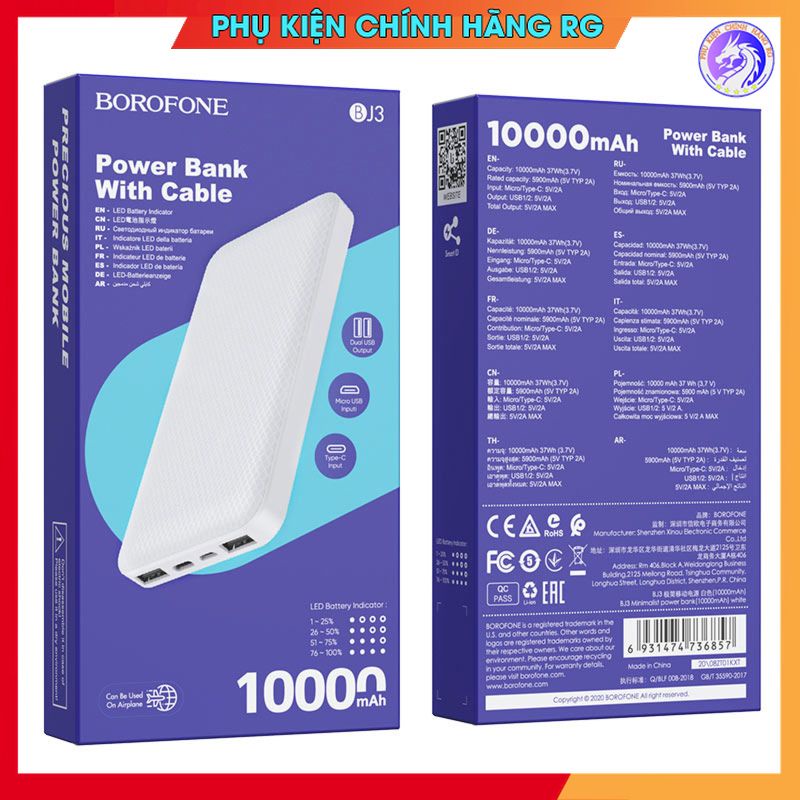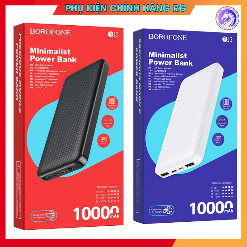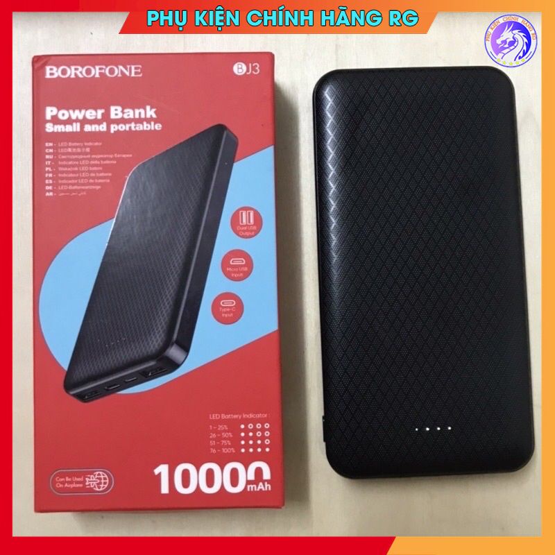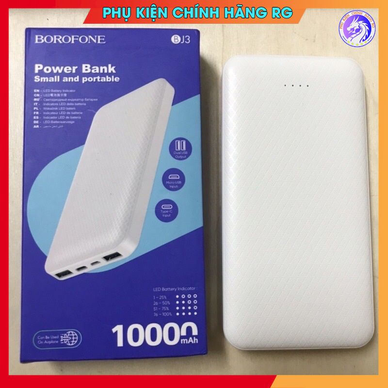 Sạc pin dự phòng giá rẻ Borofone BJ3 chính hãng dung lượng 10000 mah sạc dự phòng iphone sạc nhanh 2A bảo hành 1 năm