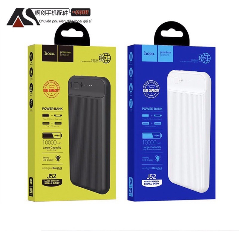 - Sạc dự phòng Hoco J52 10.000mAh có thiết kế sang trọng, nhỏ gọn, lại được trang bị công nghệ sạc nhanh an toàn với dung lượng lên đến 10000mAh là sự lựa chọn hoàn hảo đồng hành cùng chiếc smartphone