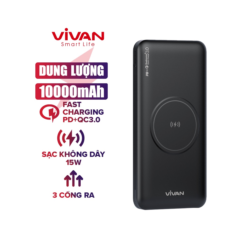 Điện Thoại & Phụ Kiện > Phụ kiện > Sạc dự phòng & Pin > Sạc dự phòng || Sạc Pin Dự Phòng Nhanh 10000 mAh 18W Chính Hãng VIVAN VPB-W11 3Output Chuẩn QC3.0 PD Hỗ trợ iPhone 13Còn hàng