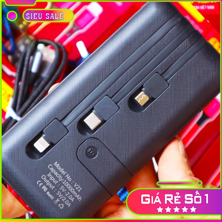 Q-power v21 được thiết kế 1 USB ra và 3 cáp sạc ngắn tích hợp sẵn ( micro usb ,usb type c , và cáp Lightning cho iphone ) giúp việc sử dụng của người tiêu dùng tiện hơn nhiều.